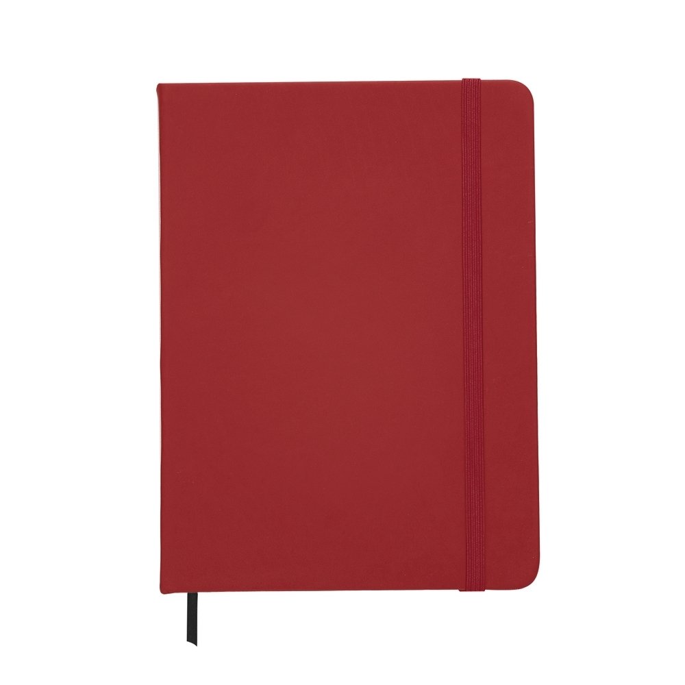 Caderneta emborrachada com pauta, elástico para lacre e marcador de página em cetim.