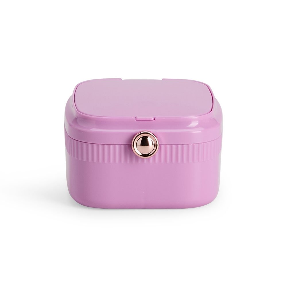 Suas joias merecem um lugar especial, e com este porta-joias, manter os acessórios organizados e protegidos nunca foi tão fácil e elegante. Produzido em plástico e de design compacto, sua abertura principal é cheia de glamour, destacada por um lindo botão na cor rose gold. Sua parte interna conta com três compartimentos: um removível e emborrachado, ideal para anéis, brincos e colares, e outro com divisória, perfeito para itens maiores como batons, pulseiras ou o que mais desejar. Além disso, possui um compartimento com espelho embutido, tornando o momento de se arrumar ainda mais especial na hora de escolher os acessórios.