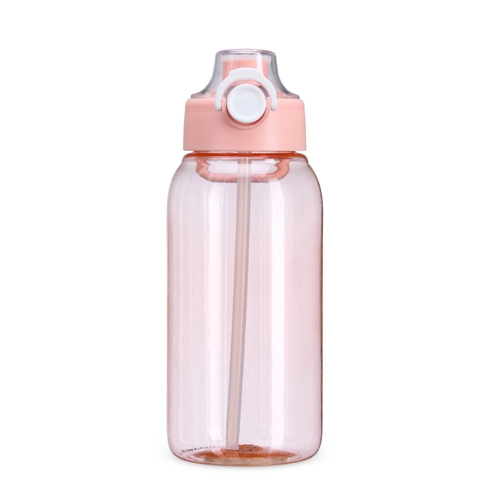 Um squeeze com capacidade de até 1 litro em um formato moderno e funcional. Sua tampa rosqueável contém protetor para o bocal com trava de segurança e acionamento por botão, além de uma alça acoplada para transporte. Acompanha canudo de plástico para encaixe interno.